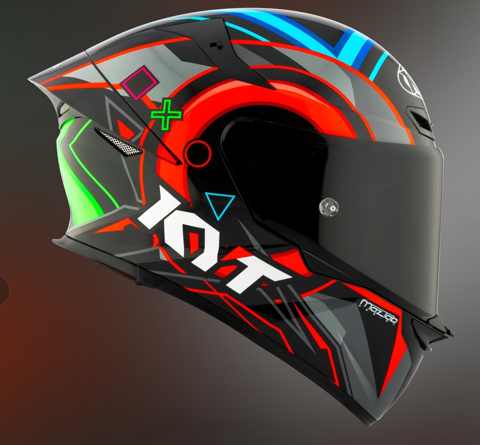 The visor is made of polycarbonate, with antiscratch treatment. The new system of hooks to the helmet and allow the visor removal without tools. TT Revo has a lock system to fix the visor during the riding in the close position. TT Revo is PINLOCK ready.