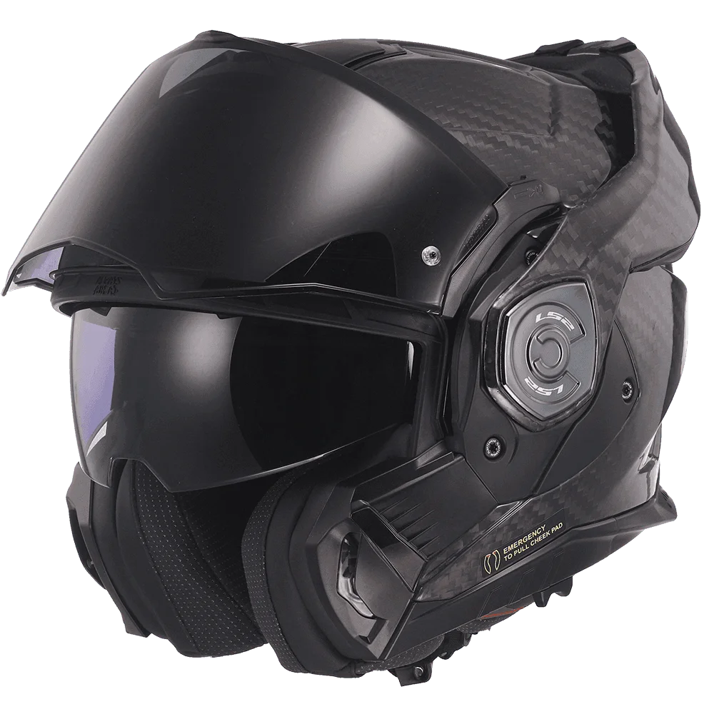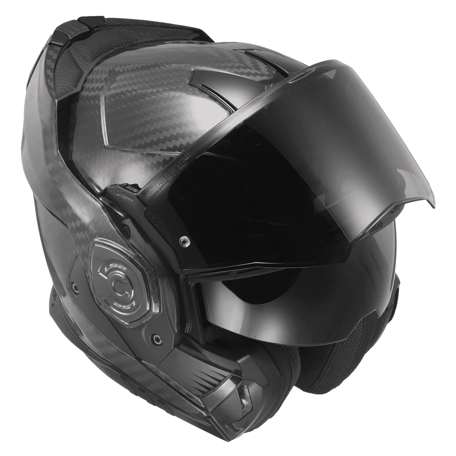 The most advanced convertible helmet on the market. Made of 100% Carbon fiber, including its 180º rotating chin bar that offers maximum lightness and safety. Perfect for any type of riding and for all weather conditions. Anti-scratch visor prepared for the anti-fog system, Pinlock Max Vision, and drop-down sun visor.