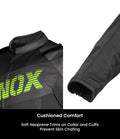 - Cushioned Comfort: Neoprene on collar and cuffs for reduced skin chafing