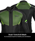 - Increased Day-Time Visibility: Dual-Tone knit mesh on the chest and back, along with hi-viz trims on chest, back, and arms.