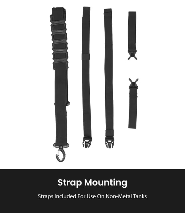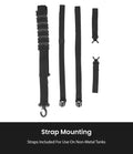 - Non-Metal Tanks: Straps included for use on non metal tanks
