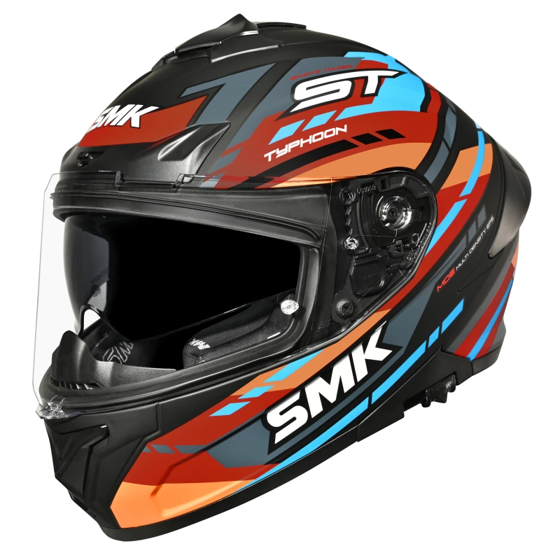 TYPHOON SPORTS TOURER is a Full-face helmet with a compact and aerodynamic shell design that appeals to sports tourers and daily commuters alike! The Typhoon range of helmets from SMK comes with industry-leading safety and comfort features.