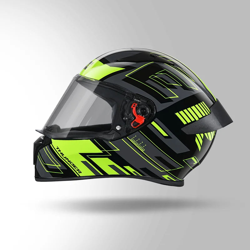 The Thunder D3 is a full-face helmet featuring a spoiler for enhanced aerodynamics. Its high-impact outer shell and regulated density EPS ensure top-notch protection. The dynamic ventilation system keeps you cool, while the hypoallergenic, replaceable liner guarantees comfort and hygiene. With a quick-release visor and chin strap for convenience, this helmet prioritizes safety and ease of use.