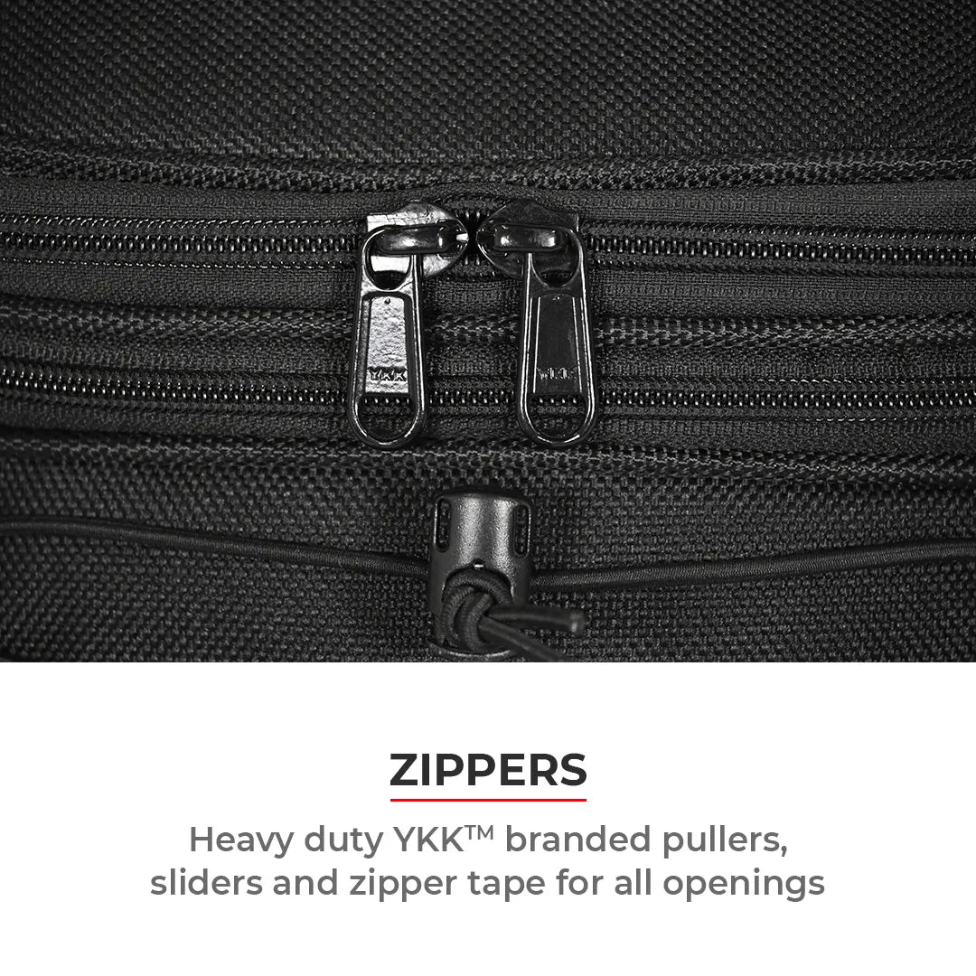 Zippers & Pullers: Only genuine YKK™ sliders and zipper tape is used in all our products. You can check the underside of the slider for the embossed “YKK” logo.