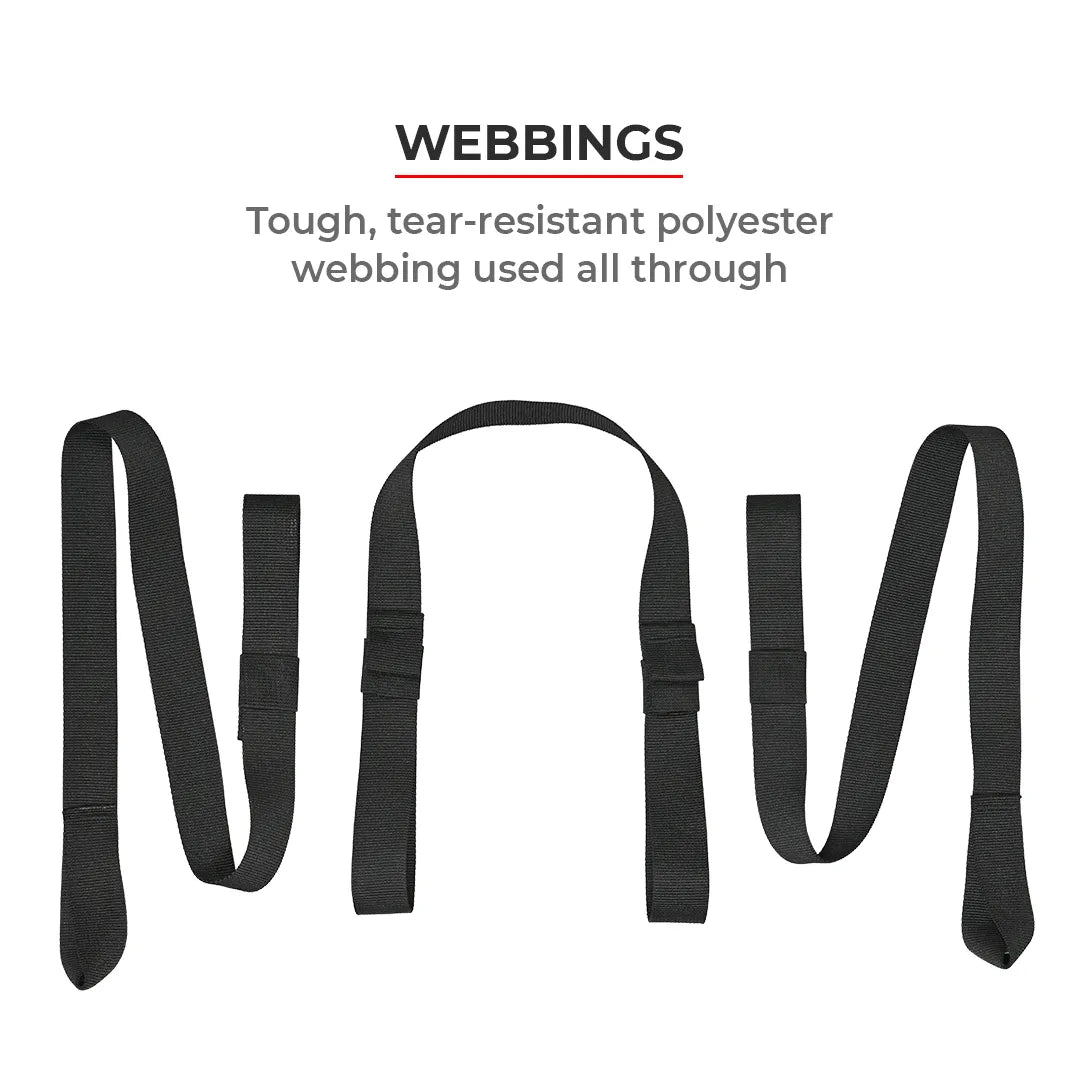 Webbing: Tough, tear-resistant polyester webbing used all through